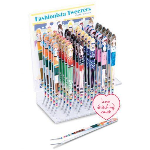 Fashionista Tweezers – 150mm tweezers. In 6 different funky female designs – pink, blue, lilac, black, orange, purple.