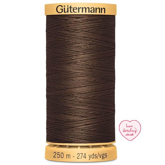 250m spool of 100% mercerised natural cotton thread. All Gutermann cotton spools are cross wound – thread is wound onto the spool in an ‘x’ design –  allowing the spool to be used on both horizontal and vertical spool pins without affecting thread tension.