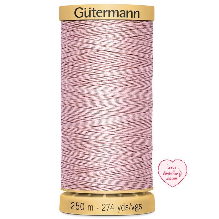 250m spool of 100% mercerised natural cotton thread. All Gutermann cotton spools are cross wound – thread is wound onto the spool in an ‘x’ design –  allowing the spool to be used on both horizontal and vertical spool pins without affecting thread tension.