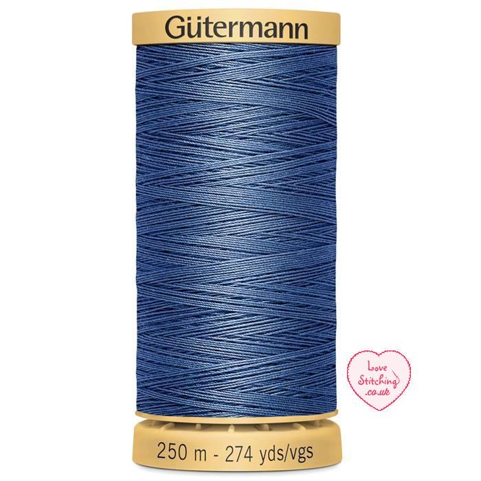 250m spool of 100% mercerised natural cotton thread. All Gutermann cotton spools are cross wound – thread is wound onto the spool in an ‘x’ design –  allowing the spool to be used on both horizontal and vertical spool pins without affecting thread tension.