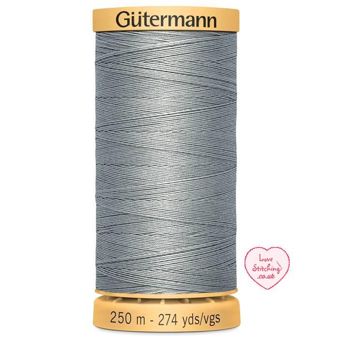 250m spool of 100% mercerised natural cotton thread. All Gutermann cotton spools are cross wound – thread is wound onto the spool in an ‘x’ design –  allowing the spool to be used on both horizontal and vertical spool pins without affecting thread tension.