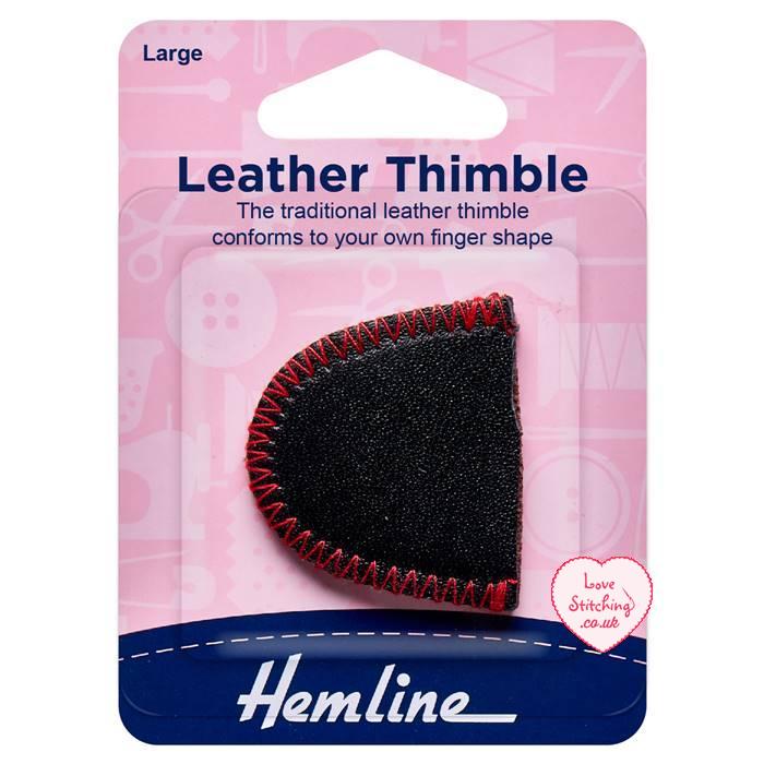 Hemline Leather thimble conforms to finger shape, and is soft and comfortable to wear. Size: Large.