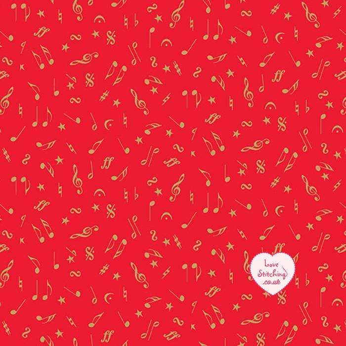 Makower UK Twelve Days Christmas patchwork and quilting fabric, metallic scrolls, snowflakes and stripes in traditional colours.